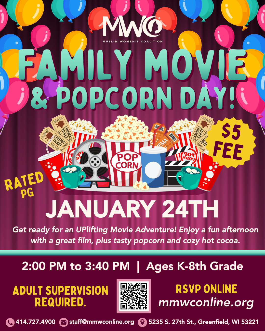 Join us for a fun afternoon with a great movie! Enjoy snacking on delicious popcorn and cocoa!