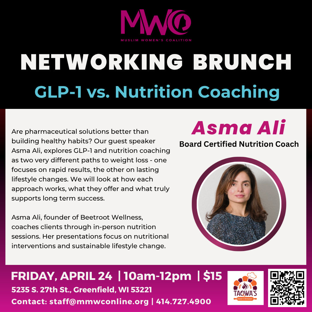 Are pharmaceutical solutions better than building healthy habits? Our guest speaker Asma Ali, explores GLP-1 and nutrition coaching as two very different paths to weight loss – one focuses on rapid results, the other on lasting lifestyle changes. We will look at how each approach works, what they offer, and what truly supports long term success.